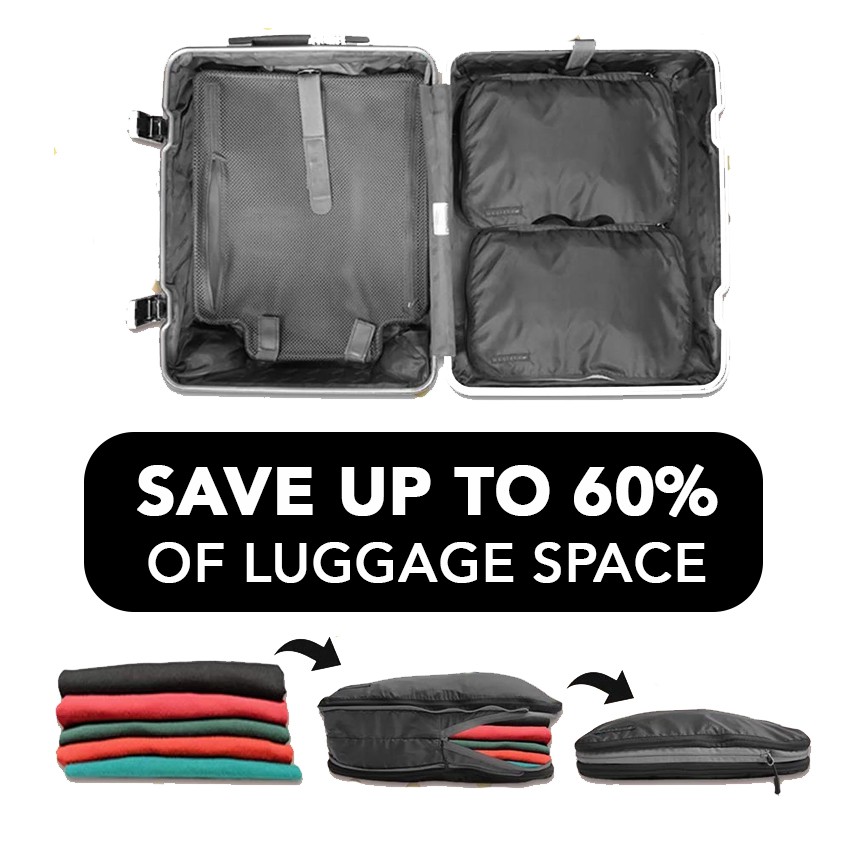 Do packing cubes save space as well as your time and sanity? Are packing cubes worth it? Gonex marketing visuals are claiming a 39% reduction in space. The travel vacuum sacks and compression packing cubes.