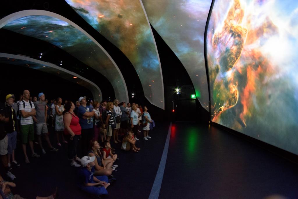 It features exhibits and displays, historic spacecraft and memorabilia, shows, two imax theaters, and a range of bus tours of the spaceport.