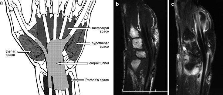 Space of parona infection is a rare and potentially limb threatening complication of pyogenic flexor tenosynovitis. The differential diagnosis of hand infections is difficult because hand infections can manifest with variable clinical presentations due to the unique anatomic structures of the hand, and the significance of. 7/9 patients reported a history of trauma.