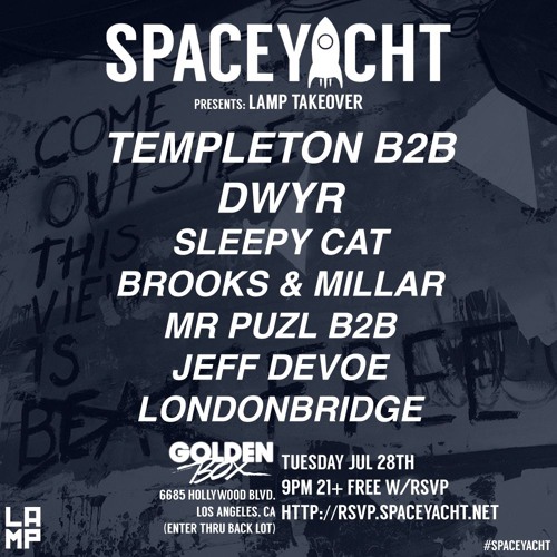 Space yacht, if you're unfamiliar, is a rad weekly party, usually held at golden box in hollywood, where dance music insiders and fans come rsvp for the next space yacht party at rsvp.spaceyacht.net.